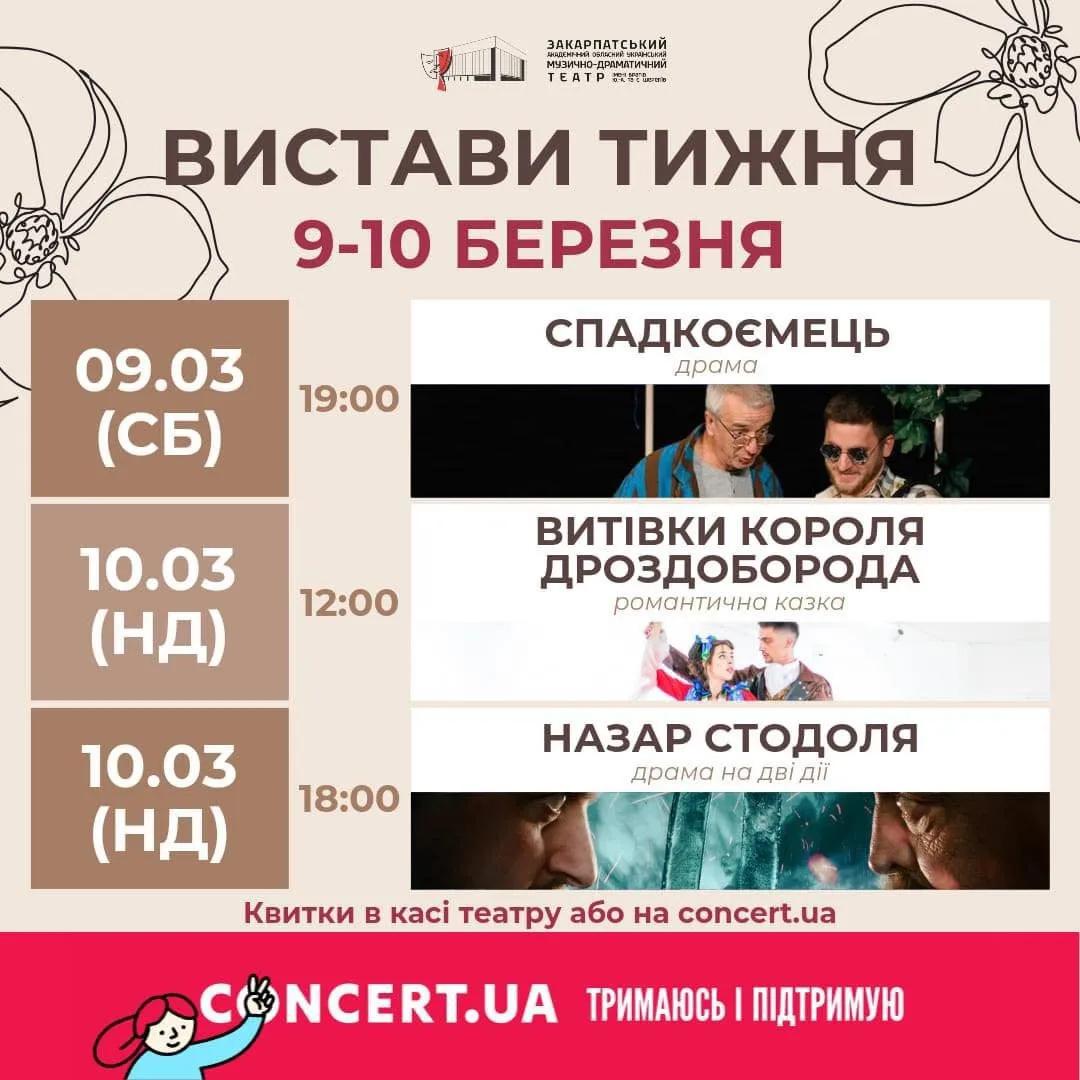 Закарпатський облмуздрамтеатр запрошує на вистави вихідного дня!