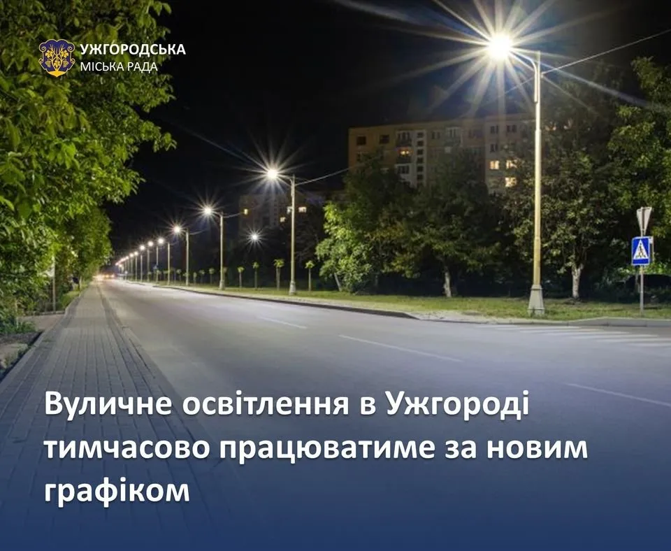 Ужгородське вуличне освітлення тимчасово вмикатимуть за новим графіком