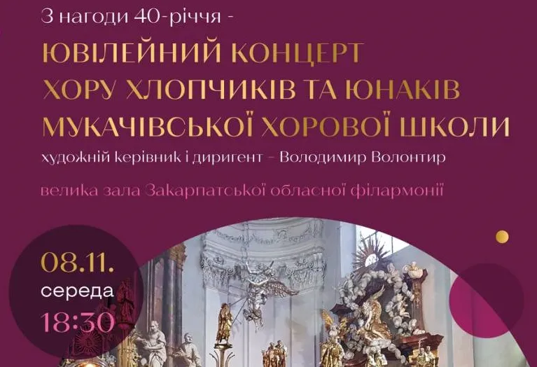 У п’ятницю в Ужгороді відбудеться ювілейний концерт хору хлопчиків та юнаків з Мукачева