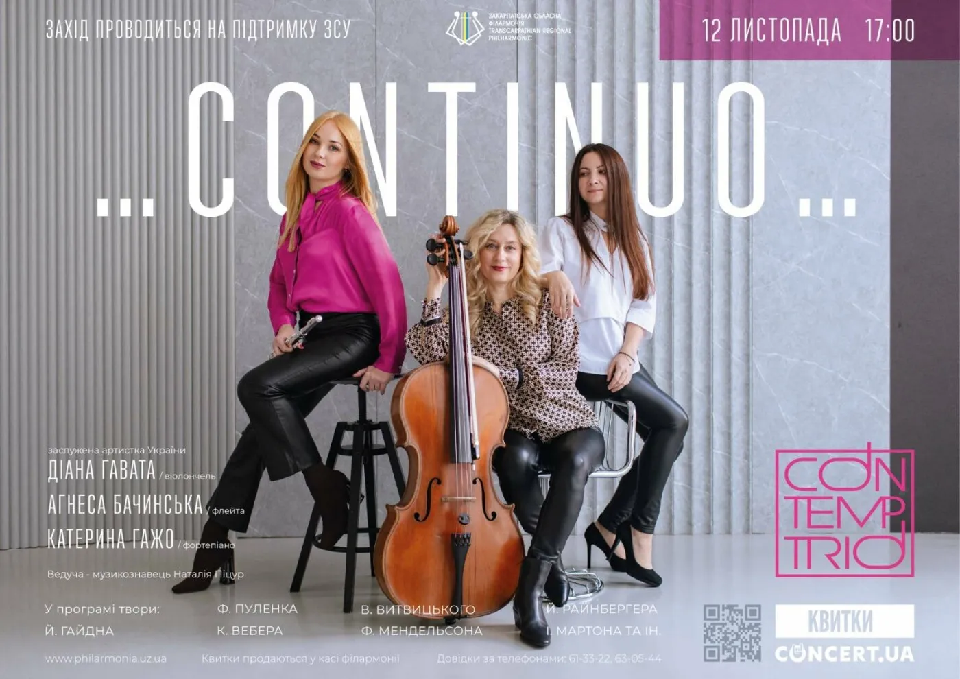 Закарпатська філармонія запрошує 12 листопада на концерт «CONTINUO»