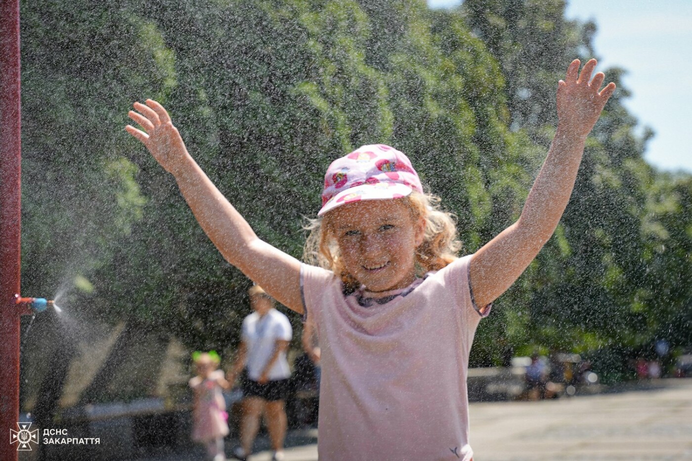 Ужгородські надзвичайники вирішили допомогти мешканцям міста пережити спеку, встановивши водяну рамку на площі Поштовій