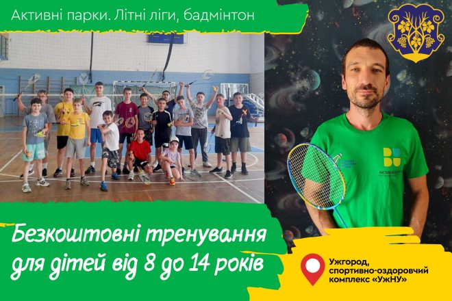 В Ужгороді діти мають можливість безкоштовно відвідувати тренування з бадмінтону.