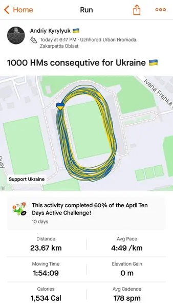 Тисячний півмарафон пробіг ужгородець Андрій Кирилюк