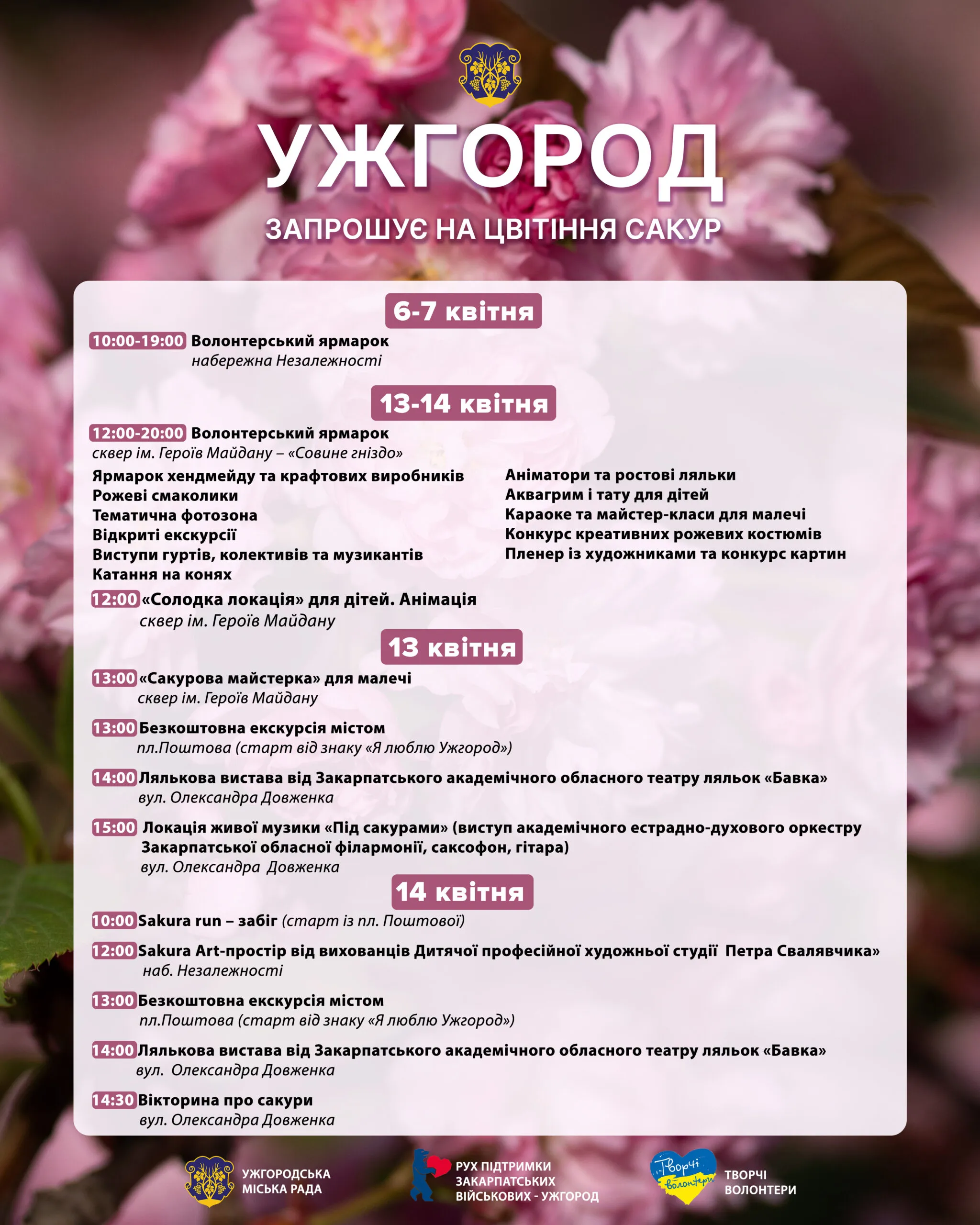 До піку цвітіння сакур в Ужгороді приурочили ряд заходів і перекрили “сакуровий” центр міста для транспорту