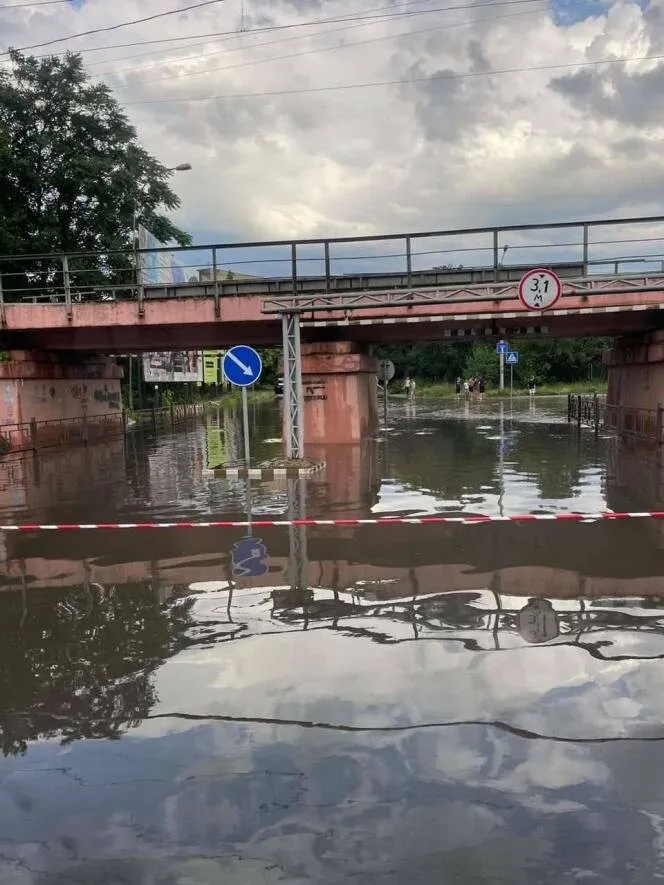 Негода в Ужгороді: злива, град, підтоплені вулиці і навіть змита бруківка