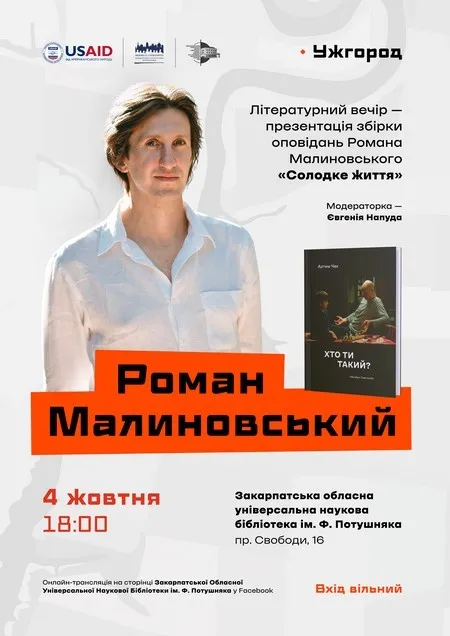 Письменник та видавець Роман Малиновський презентує дебютну книжку "Солодке життя" в Ужгороді
