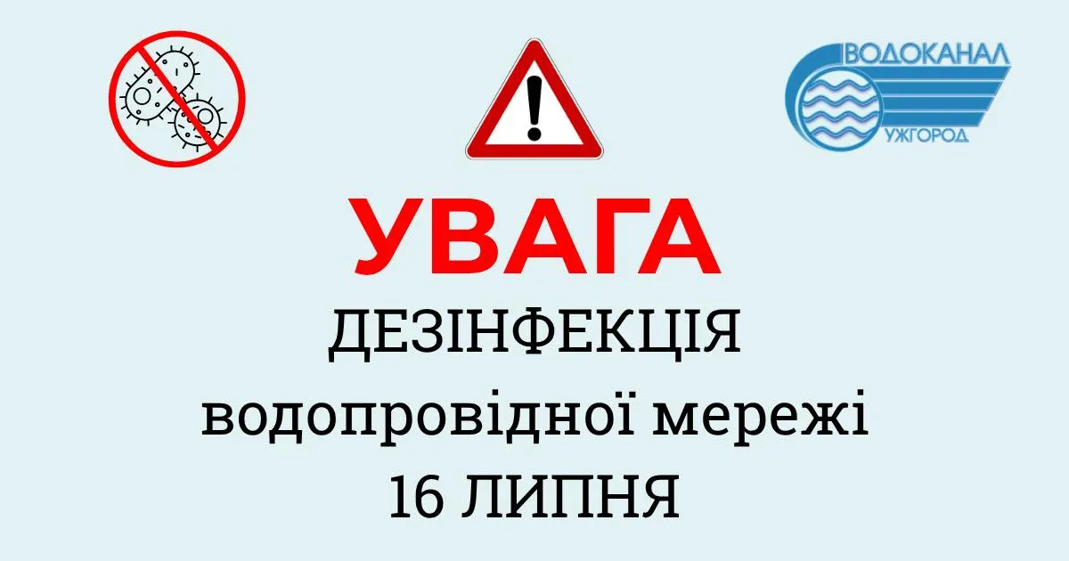 В Ужгороді в ніч із 15 на 16 липня проведуть дезінфекцію водомережі