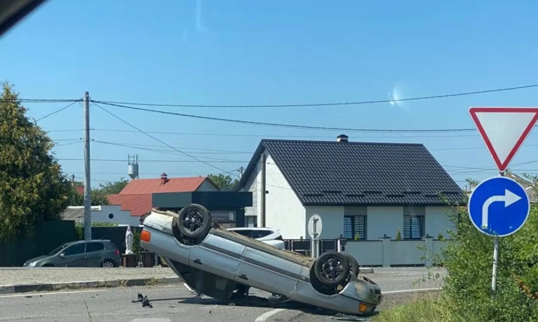 При в’їзді в Ужгород внаслідок ДТП авто перекинулося на дах