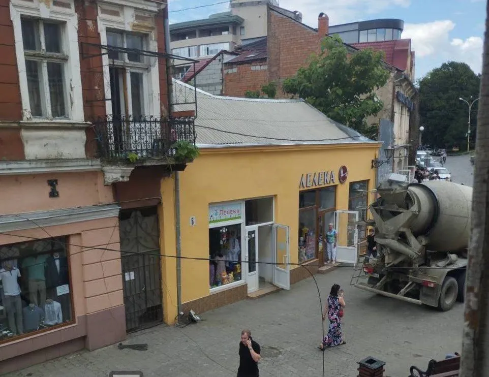 У центрі Ужгорода жінка отримала травму від ліхтаря, який впав через автобетонозмішувач.