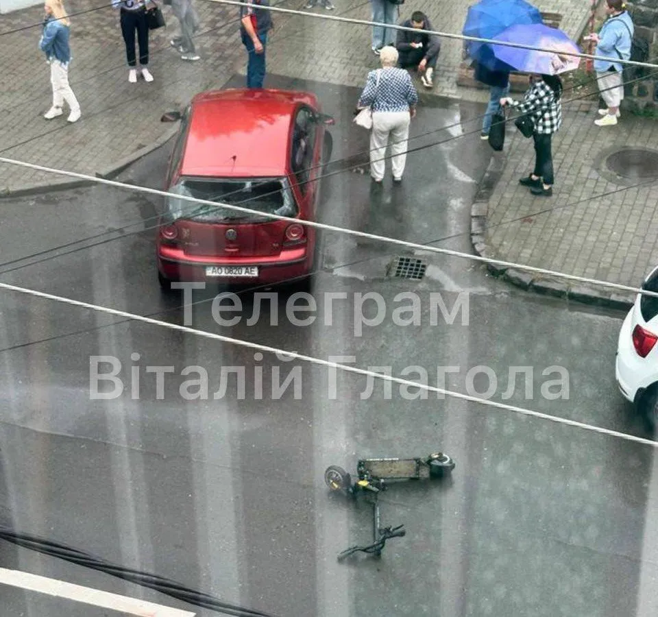 В Ужгороді чоловік на швидкісному електросамокаті влетів в авто