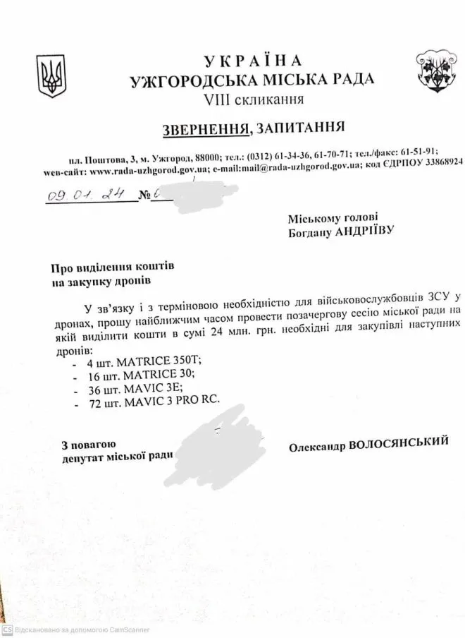 Дрони і авто: Ужгородська міськрада відповіла на звинувачення військового