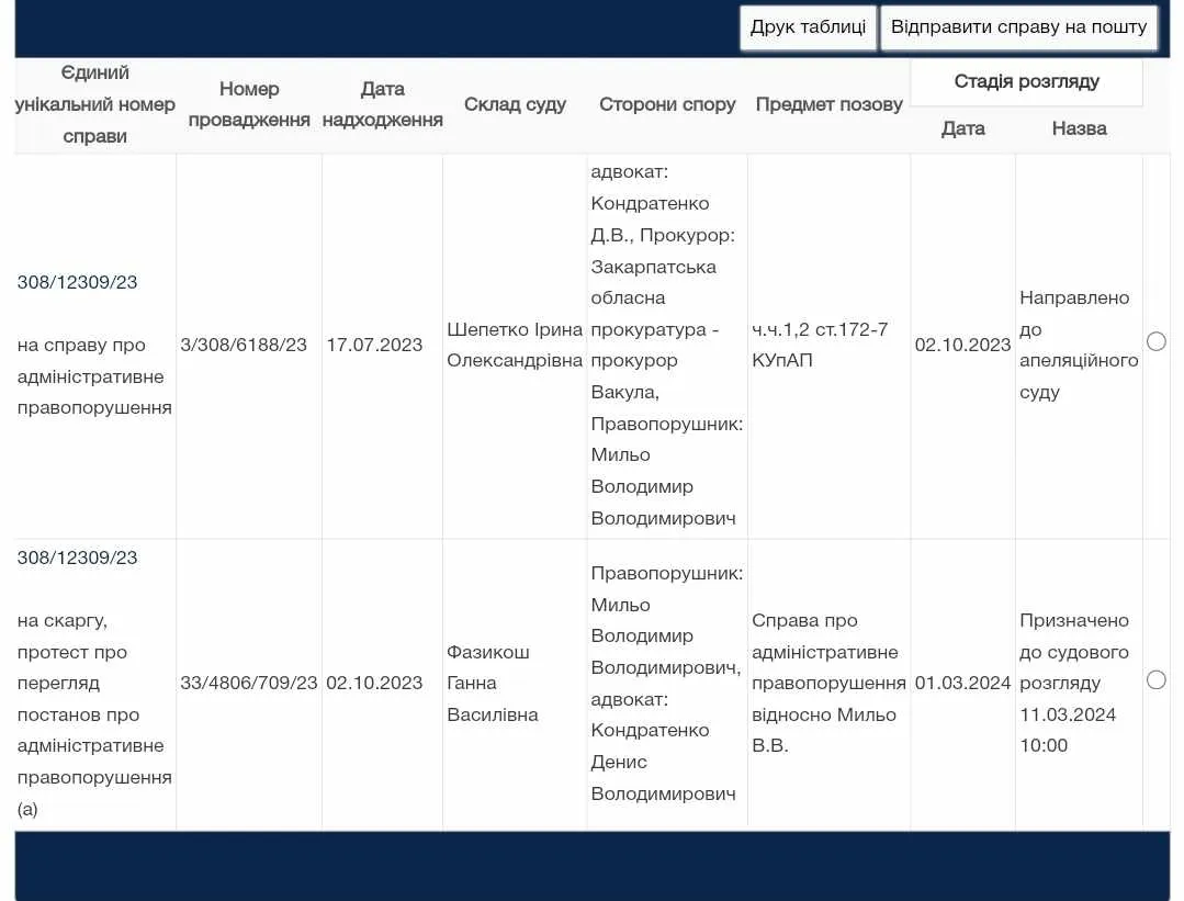 У понеділок “недоброчесна” голова апеляційного суду Фазикош розглядатиме апеляцію “корупційного” голови земельної комісії Ужгорода Мильо