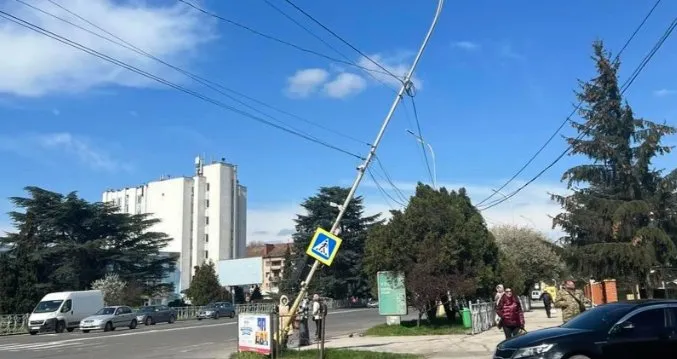 В Ужгороді на площі Кирила й Мефодія вітер майже звалив електричний стовп на перехожих