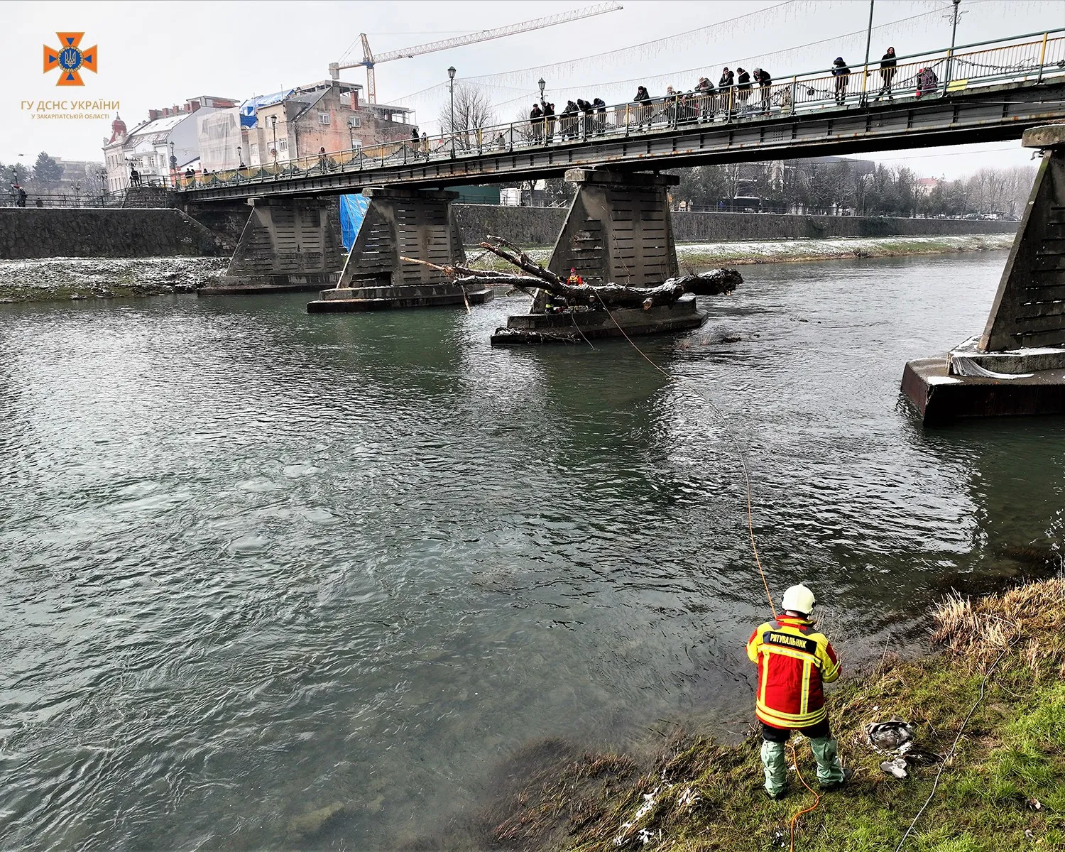 В Ужгороді провели розчистку опор пішохідного мосту від сміття та деревини