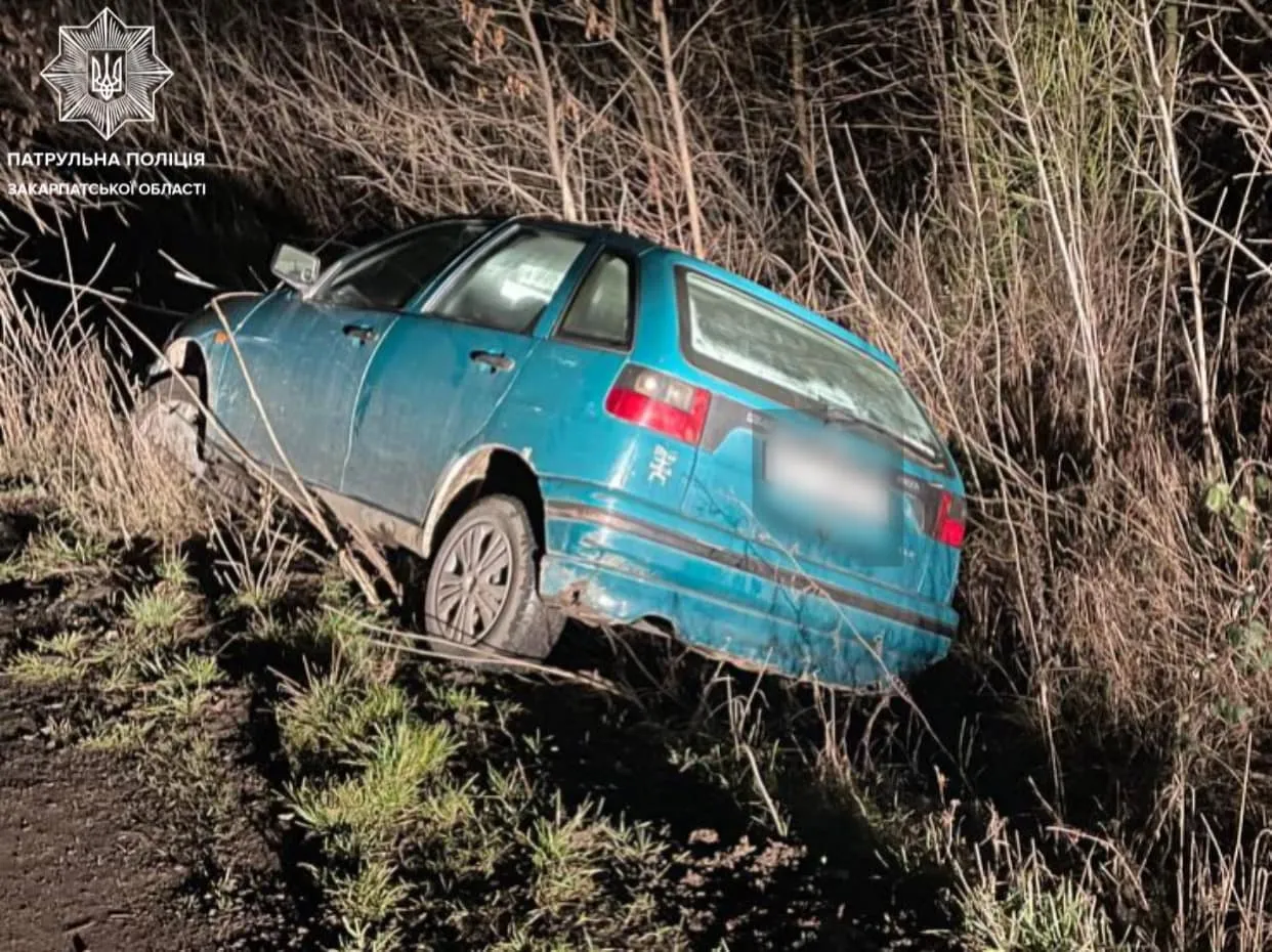 В Ужгороді розшукали п'яного водія, який злетів у кювет і пішов геть, покинувши автівку