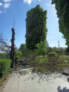 На Ужгородську набережну обрушилася негода: подекуди лежать повалені дерева