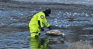 Ужгородські рятувальники врятували лебедя, який застряг на річці Уж