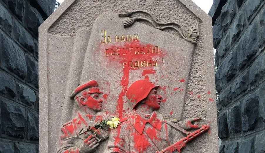 На Пагорбі Слави в Ужгороді "декомунізували" "барельєф радянських солдатів" та заштукатурили зірки на обелісках
