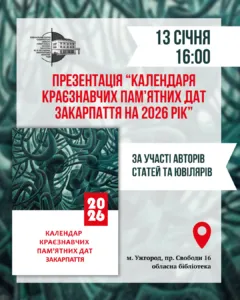 Хроніки краю: В Ужгороді презентують «Календар краєзнавчих пам’ятних дат на 2026 рік»