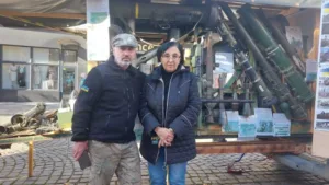 “На щиті”: подружжя волонтерів представило в Ужгороді мобільну виставку артефактів війни