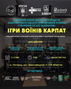Встигніть зареєструватися на «Ігри воїнів Карпат»!31 січня в Ужгороді військо…